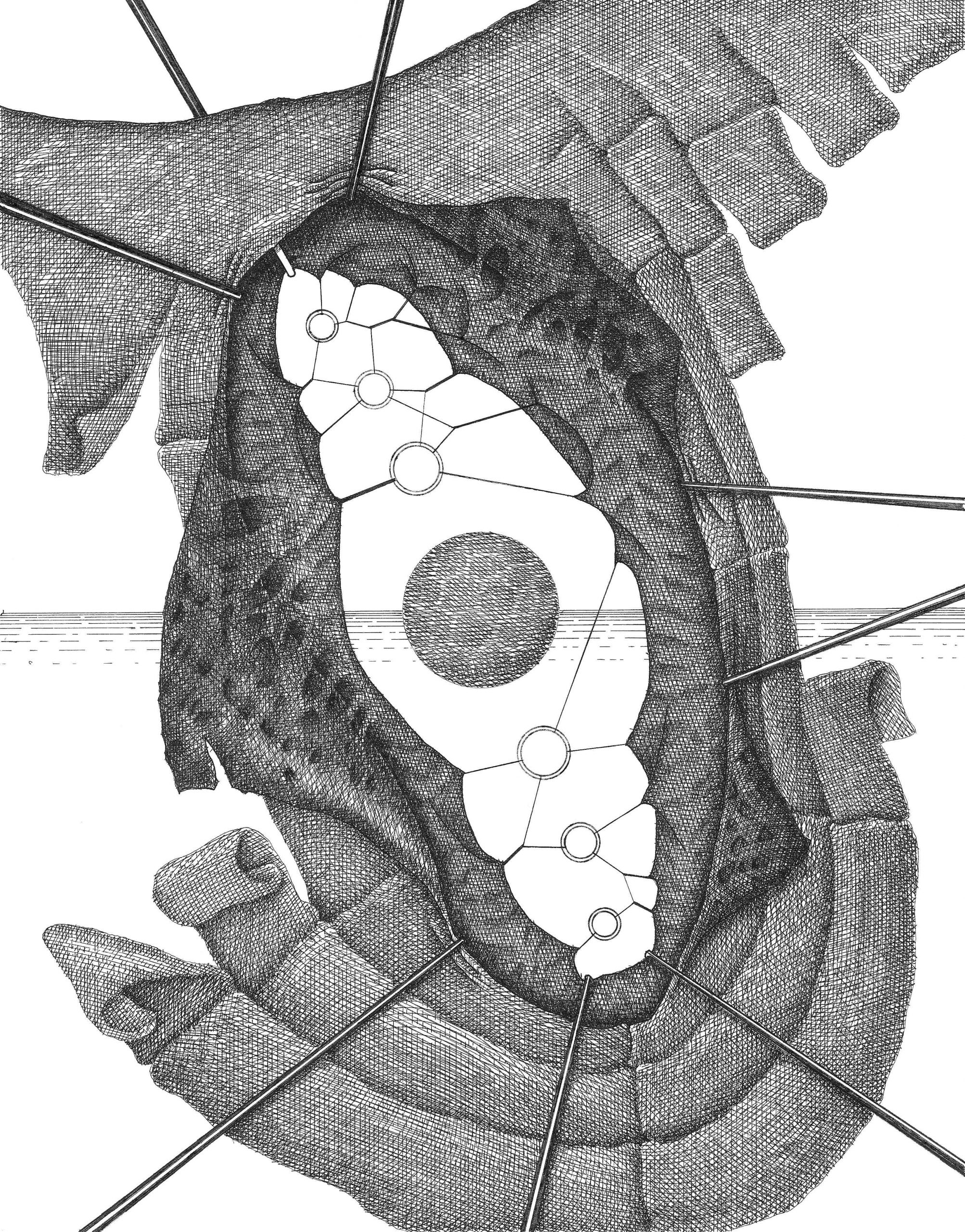 Ink applied with rapidograph